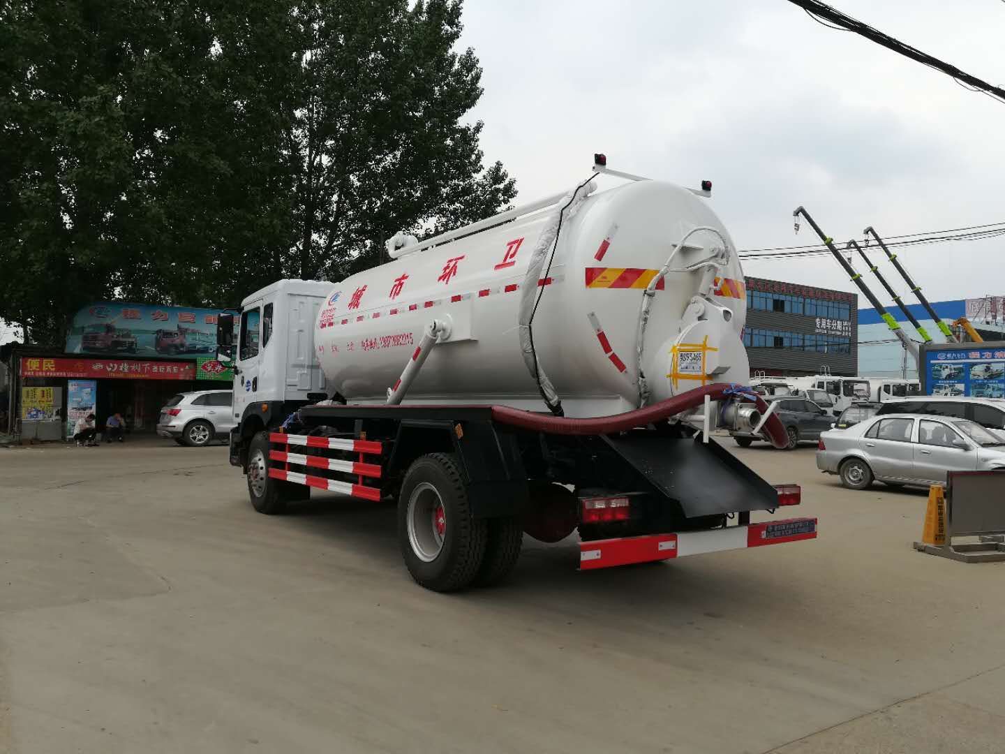 湖北程力吸污車工作原理 吸污車專用部分由取力器、傳動(dòng)軸、真空吸污泵、壓力罐體、液壓部分,管網(wǎng)系統(tǒng)、真空壓力表、視糞窗、洗手裝置等組成,隨車配置大功率真空吸污泵和優(yōu)質(zhì)液壓系統(tǒng),罐體封頭一次壓鑄成型、罐體可后開、雙頂自卸。罐內(nèi)污物可通過后蓋直接傾倒,具有真空度高(比吸糞車的吸力更大)、噸位大、效率高、用途更廣泛的特點(diǎn)。 油水分離器,水氣分離器,液壓自卸裝置,專用真空吸污泵,容積壓力表,吸物導(dǎo)管,自流閥,真空罐體,連通器(視糞窗),全自動(dòng)防溢閥,液壓套件。 吸污車主要用于清洗城市下水道,管道的沉積物,死角泥溝的疏通,也可用于清洗工業(yè)排液管道,壁面等,并可兼作灑水,運(yùn)水和沖公路用,緊急時(shí)可用于救火。 湖北程力東風(fēng)D9吸污車底盤配置: 采用東風(fēng)D9底盤,白色排半可前翻駕駛室,康明斯180馬力國五發(fā)動(dòng)機(jī),8檔變速箱,軸距45000mm,10噸后橋,10.00R20原廠鋼絲胎,原廠abs,電動(dòng)玻璃,原廠空調(diào),帶方向助力,離合助力器,氣剎制動(dòng)。 湖北程力東風(fēng)D9吸污車上裝配置: 東風(fēng)D9吸污車罐體形狀為圓柱形,采用武鋼6mm厚優(yōu)質(zhì)碳鋼鋼板,罐體前部帶吸污窗,洗手裝置,舉升裝置,吸污管8米一根,罐體多種顏色選擇,其余按廠內(nèi)標(biāo)準(zhǔn)配置制作。隨車配置大功率真空吸污泵和優(yōu)質(zhì)液壓系統(tǒng),罐體封頭一次壓鑄成型、罐體可后開、雙頂自卸。罐內(nèi)污物可通過后蓋直接傾倒,具有真空度高(比吸糞車的吸力更大)、噸位大、效率高、用途更廣泛的特點(diǎn)。(垂直吸程:≥8 m,工作壓力:8500Pa,理論抽速:120L/S,軸功功率:≤13kw,進(jìn)排氣口徑:50mm,抽滿罐時(shí)間:<5 min,排滿罐時(shí)間:<4min。吸污車采用大功率真空泵,一次壓鑄成型的封頭-,加厚的抗壓罐體,雙頂液壓系統(tǒng),是比吸糞車功能更強(qiáng)大的車型。下面是山東濰坊用戶再次到湖北程力訂購12方吸污車發(fā)車圖片: |