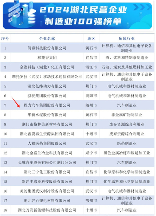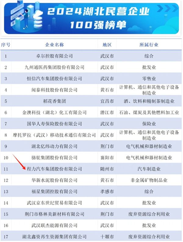 導(dǎo)讀:今天(10月31日)湖北省工商業(yè)聯(lián)合會(huì)發(fā)布2024湖北民營企業(yè)百強(qiáng)系列榜單這是湖北連續(xù)14年發(fā)布民企百強(qiáng)榜單,湖北發(fā)布2024湖北民營企業(yè)百強(qiáng)榜單,程力汽車集團(tuán)位列…