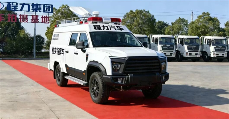 “程力汽車,智享未來”正以科技創新為契機,邁向新質生產力高質量發展之路的新征程。 二、機動布局,快速響應 車身采用強化越野底盤與模塊化艙體設計,可適應各類復雜路況,30分鐘內即可完成現場部署。內部指揮艙配備多屏交互系統、智能調度臺及應急供電裝置,滿足8人指揮團隊全功能作業。無論是自然災害救援,還是大型活動安保,皆能快速建立前線指揮部,實現“到場即用,用即高效”的應用實效。