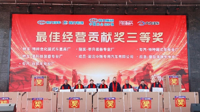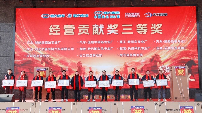董事局主席程道國先生作總結(jié)講話,程主席回顧了程力發(fā)展征程,寄語全體同仁乘勢而上、策馬揚(yáng)鞭,以更昂揚(yáng)斗志深耕主業(yè)、開拓創(chuàng)新,共筑程力發(fā)展新高度。講話期間,二等獎、一等獎抽獎相繼揭曉,米家滾筒洗衣機(jī)等大獎花落名家,將氛圍推向頂點(diǎn)。 歲序更新,華章再啟,展望2026年,我們程力人初心如磐,奮楫篤行;馬躍新程,未來可期。本次大會既是總結(jié)表彰的榮耀盛典,更是啟航新局的動員令。全體程力人將以榜樣為力量,以戰(zhàn)略為指引,凝心聚力、勇毅前行,以實干書寫2026新篇章,共赴程力集團(tuán)更輝煌的未來! 延展鏈接:2025年捷報頻傳碩果累累! 程力汽車集團(tuán)2025年專汽單項產(chǎn)值首次突破100億元大關(guān),出口創(chuàng)匯1億美金,上繳稅收超過一億元,在中國民企500強(qiáng)排名第320位,綜合實力顯著增強(qiáng)! 同時,程力汽車集團(tuán)旗下子公司程力專用汽車股份有限公司“程力威”商標(biāo)品牌價值,被湖北省政府、省發(fā)改委、省經(jīng)信廳認(rèn)定全國首家專汽品牌價值達(dá)12.38億元;“集團(tuán)還同時擁有“大力”中國馳名商標(biāo)和“程力”湖北省優(yōu)勢商標(biāo)等知識產(chǎn)權(quán)無形資產(chǎn),知名品牌覆蓋了汽車整車、底盤、新能源車、汽車零部件等全鏈條關(guān)聯(lián)產(chǎn)業(yè)。 |
