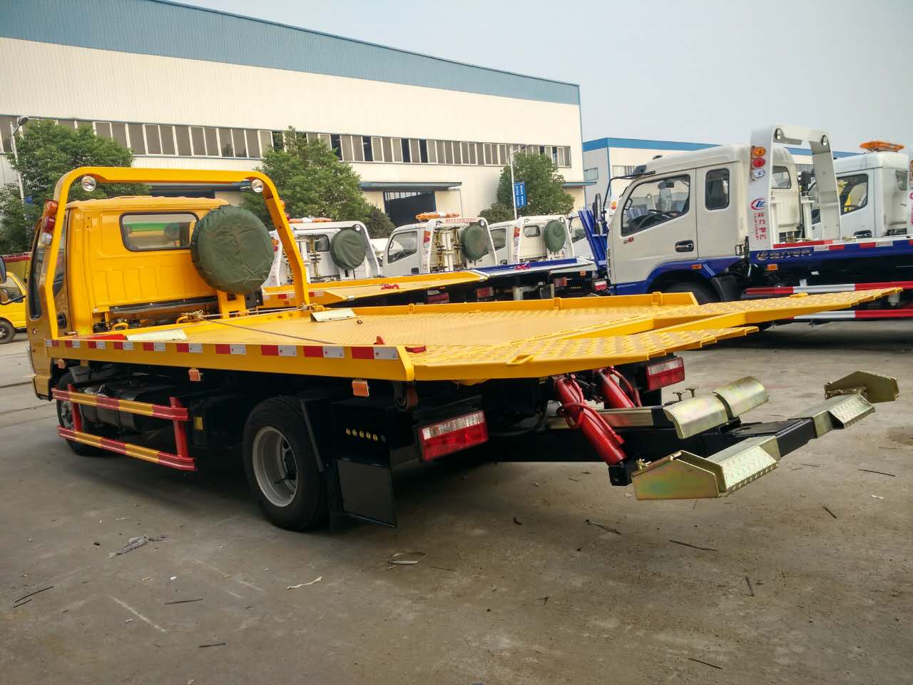 上裝標配花紋板和壓制板兩種。隨車配綁帶4根,L型托叉壹對,4T卷揚,20m的鋼絲繩。警燈一套,底盤合格證,保修手冊,整車合格證,整車票,整車說明書,及隨車工具一套,顏色可選。