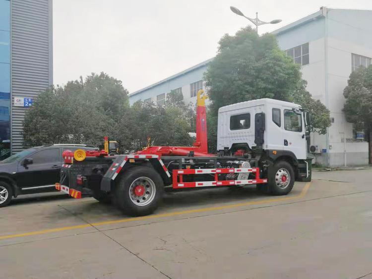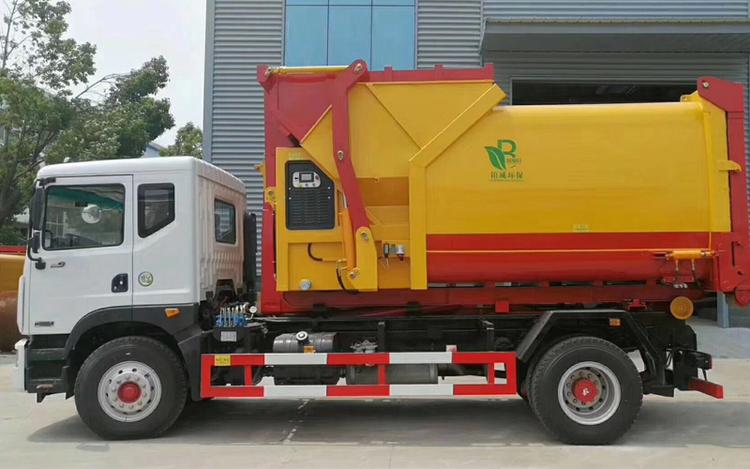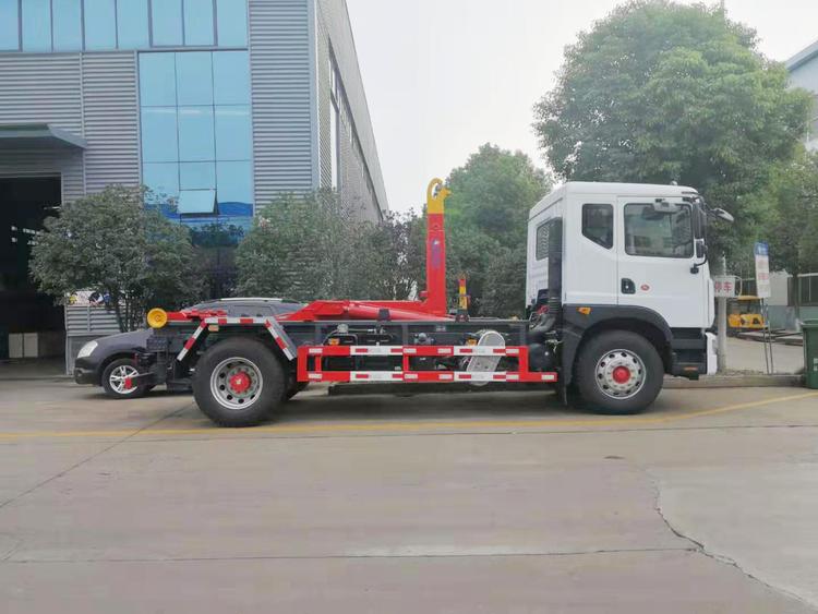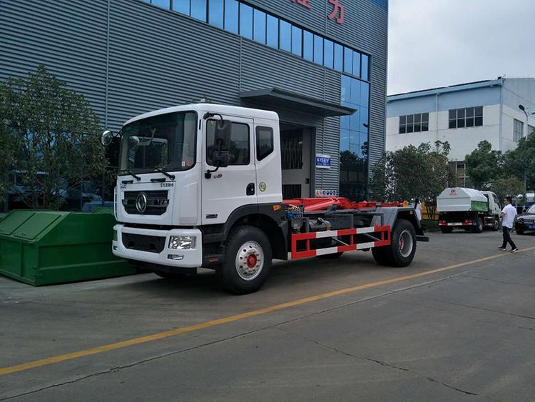 東風多利卡D9勾臂式垃圾車,承載重量12-16噸(垃圾加箱體)。可配套容積8-12方移動壓縮垃圾站或15-18方勾臂垃圾箱。國六排放,柴油發動機。伸縮式套臂,提升重量12噸、16噸可選,加強型副梁,鑄鋼尾托輪,電控+手動操控,帶鎖緊架、鎖緊油缸。液壓完成上箱+下箱+鎖緊+自卸等作業。尾部帶液壓后支腿。 帶自動裝卸垃圾箱功能,配10-16立方鉤臂垃圾箱或者移動壓縮垃圾站。一車可以配多個垃圾廂,帶自卸功能。 | 湖北程力國六D9勾臂垃圾車(車廂可卸式垃圾車)程力威牌CLW5180ZXXE6型車廂可卸式垃圾車圖片價格: