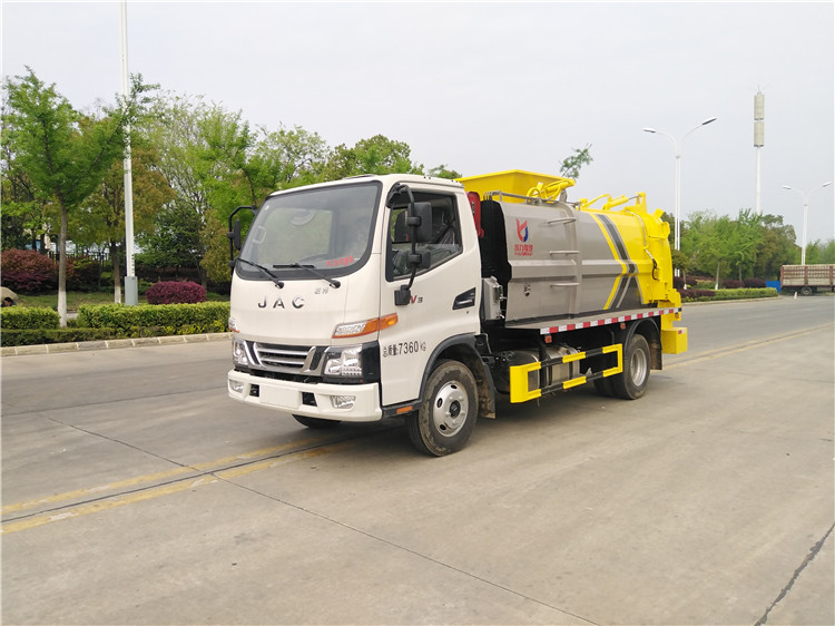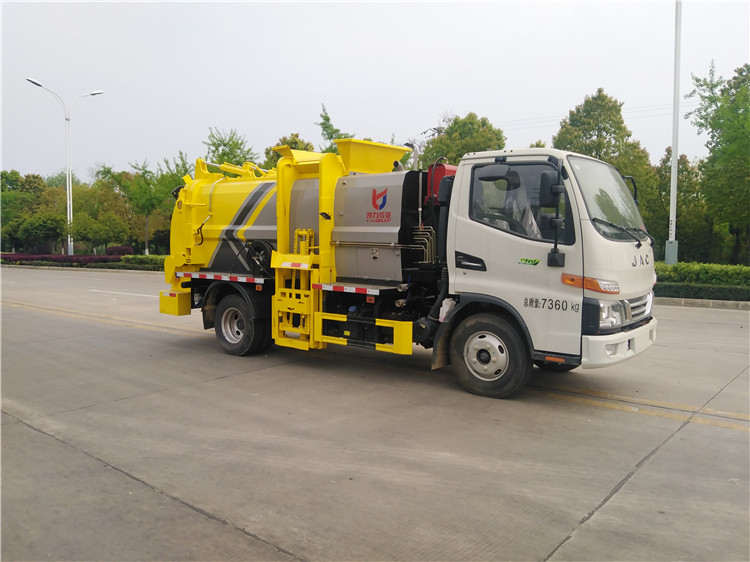 湖北程力國六江淮駿鈴5方餐廚垃圾車(方罐)程力威牌CLW5081TCAH6型餐廚垃圾車 廠家配置: 湖北程力國六江淮駿鈴6方餐廚垃圾車(方罐)底盤配置:江淮駿鈴V6駕駛室2071寬體,3365軸距,云內(nèi)德威163馬力D30TCIF2(120KW),六齒六檔變速箱,動(dòng)轉(zhuǎn),中控鎖,電動(dòng)玻璃,多功能方向盤,日間行車燈,空調(diào),斷氣剎,前橋3噸,后橋7.2噸,750R16LT 14PR鋼絲胎。 湖北程力國六江淮駿鈴6方餐廚垃圾車(方罐)改裝標(biāo)配:(1)弧形箱體,箱體材質(zhì)為4mm。(2)合肥皖液油泵,江蘇多路閥,國產(chǎn)液壓油缸。(3)推鏟卸料(不帶舉升功能),具有干濕分離功能。液壓后蓋,后蓋帶密封條。(4)后門液壓鎖緊。(5)拉桿式提升機(jī),掛240L標(biāo)準(zhǔn)塑料垃圾桶。進(jìn)料口蓋液壓開關(guān)。(6)駕駛室內(nèi)集中電控(提升機(jī)外部手動(dòng)控制),后門鎖緊與后蓋開關(guān)的操作具有防誤操作。(7)箱體帶清洗裝置(液壓馬達(dá)帶動(dòng)高壓泵、帶水箱) 湖北程力國六江淮駿鈴5方餐廚垃圾車(方罐)程力威牌CLW5081TCAH6型餐廚垃圾車圖片價(jià)格: