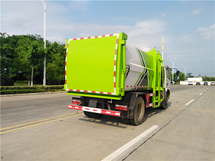自裝卸式垃圾車優點: 1,壓縮式垃圾車的換代產品; 2,容積大7.立方,3360軸距壓縮車裝載量240升垃圾桶120桶左右. 3,自重輕,燃油經濟性高, 4,故障率低,售后率低,壓縮垃圾車液壓系統復雜,該車型液壓系統簡單,并配置高壓過濾器,保護液壓系統,只有提升機油缸,推板油缸,后面舉升油缸。 5,該車型配置液壓反向鎖死機構,并使用硅膠密封條,可杜絕箱內壓縮垃圾時,后門開縫漏污水,越壓縮后門鎖死越緊,后門采用壓縮垃圾站式加強型后門,抗擠壓抗變形。 湖北程力國六東風大福瑞卡(多利卡)側裝掛桶自裝卸式垃圾車程力威牌CLW5122ZZZ6SL型自裝卸式垃圾車圖片: |