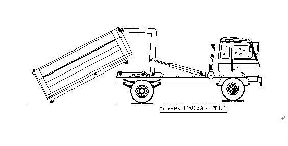 拉臂式垃圾車(車廂可卸式垃圾車)使用說明 一、概述 什么是勾臂垃圾車? 車廂可卸式垃圾車又稱拉臂式垃圾車(以下簡(jiǎn)稱垃圾車)是用于城鎮(zhèn)袋裝、散裝生活垃圾物的收集、運(yùn)輸、卸料作業(yè)的專用車輛。 該車是由汽車底盤、拉臂主油缸、附車架、翻轉(zhuǎn)架、支撐腿(選裝)、鎖緊架、鎖緊油缸及多路換向閥等組成。翻轉(zhuǎn)架一端連在附車架上,其另一端設(shè)有活動(dòng)拉臂,中間安裝有鎖緊系統(tǒng);活動(dòng)臂油缸一端連在活動(dòng)臂上,另一端連接在附車架上;鎖緊機(jī)構(gòu)通過鎖緊油缸的動(dòng)作可以在箱體自卸時(shí)將附車架上的箱體與翻轉(zhuǎn)架及拉臂連為一體,在主油缸伸出時(shí)形成自卸角,也可以通過鎖緊油缸的收回把翻轉(zhuǎn)架與附車架鎖緊為一體,利用主油缸的收回或伸出使活動(dòng)拉臂將地下的垃圾箱拖拉至附車架上或從附車架上放回到地面。 該車可將地下垃圾箱內(nèi)的垃圾及垃圾箱一同拉至車上運(yùn)走同時(shí)可自卸,降低了工人的勞動(dòng)強(qiáng)度。該垃圾車的收運(yùn)方式是目前世界上廣泛采用的垃圾收運(yùn)方式,可以實(shí)現(xiàn)一車多箱,大大降低了配備成本和空間等等;其專用裝置的功能均以汽車發(fā)動(dòng)機(jī)為動(dòng)力,通過液壓機(jī)構(gòu)手動(dòng)或電控來實(shí)現(xiàn)。車輛的箱體采用優(yōu)質(zhì)炭鋼板全密封焊接結(jié)構(gòu),具有強(qiáng)度高、重量輕、不產(chǎn)生二次污染等優(yōu)點(diǎn)。 二、結(jié)構(gòu)簡(jiǎn)圖 三、操作步驟 在裝載垃圾前,空載運(yùn)轉(zhuǎn)達(dá)到6個(gè)標(biāo)準(zhǔn)氣壓時(shí),掛上取力器(駕駛室內(nèi)方向盤左下方),檢查各部件有無泄漏或異常后,再按照操作指示牌指示位置進(jìn)行操作;其具體操作步驟如下: 拉起垃圾箱體 步驟1.將鎖緊鉤操作手柄推至收回位置,鎖緊油缸收回,使鎖緊架收回并將翻轉(zhuǎn)架與附車架鎖緊固定;如圖: 步驟2.將拉臂操作手柄拉起到伸起位置,拉臂油缸伸出,活動(dòng)拉臂繞翻轉(zhuǎn)翻轉(zhuǎn)架前鉸鏈軸旋轉(zhuǎn),拉臂處于鉤箱位置,適當(dāng)調(diào)整拉臂鉤高度并與箱體彎鉤對(duì)準(zhǔn);如圖: