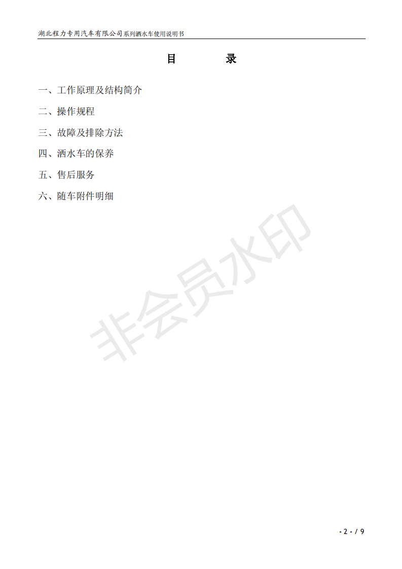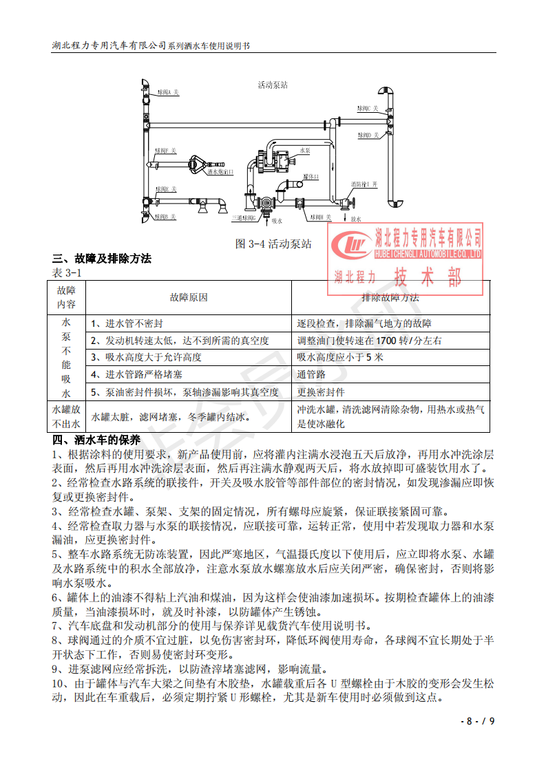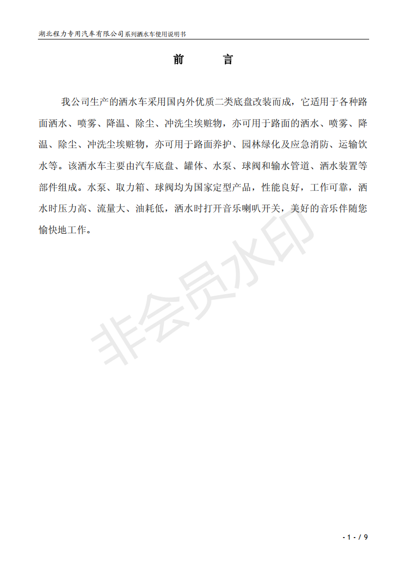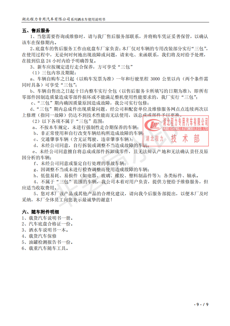 湖北程力灑水車(chē)操作說(shuō)明書(shū)