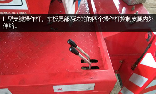 H型支腿操作桿,車板尾部兩邊的的四個(gè)操作桿控制支腿內(nèi)外伸縮。
