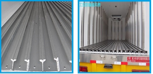 通風系統:底板通風槽、廂內四周通風隔板。 增強制冷機的冷風循環效果,安裝通風槽后貨物不會緊貼廂體側壁與廂底,通風槽材質為鋁合金型材,結構簡單易清潔。運輸肉類或者藥品物品、箱體物品,需要加裝通風槽,防止變質。 |
