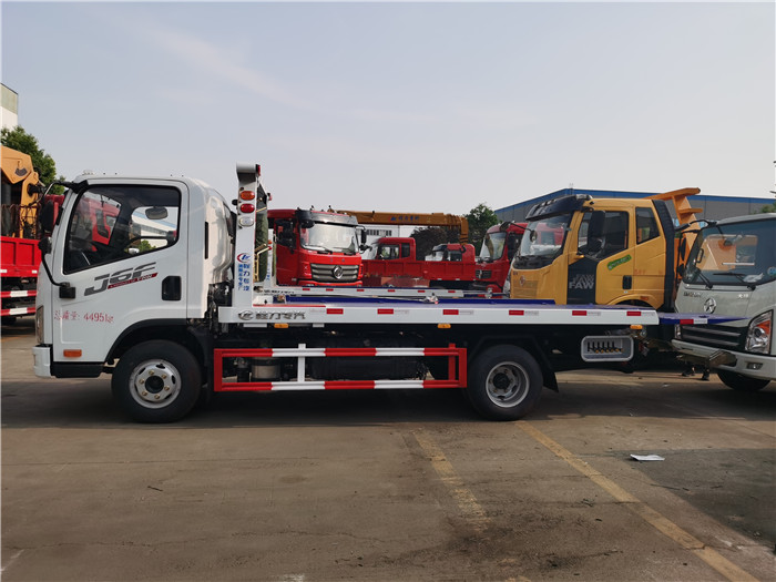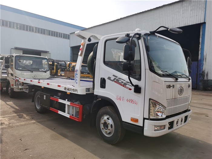 國六解放虎v藍牌一拖二清障車配置: 國六錫柴130馬力發動機,3300軸距,萬里揚6擋變速箱,原裝空調,電動玻璃,定速巡航,ABS,700R16鋼絲胎! 采用半落地式上裝,平板長度4.2米,寬2.3米,平板采用新型一次性成型帶孔沖壓板或4個厚花紋板,尾板可選用翻轉板或新款抽拉式尾板,尾板長1.2米,3噸上裝,配液壓絞盤4噸,21米鋼絲繩,雙側聯動操作,配輔助輪小車一對,方形套筒一對,綁帶4條。 整車出具:底盤合格證、整車合格證、全國統一機動車發票、隨車工具,車輛質保手冊、全國服務站點目錄等。