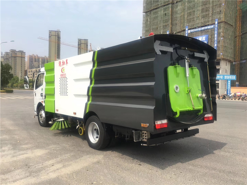 湖北程力國六東風(fēng)多利卡(福瑞卡)洗掃車CLW5120TXS6型洗掃車功能介紹 東風(fēng)多利卡洗掃車采用洗,掃,吸,混合的方式收集垃圾,濕式除塵、電液PLC一鍵控制,液壓傾翻卸料的作業(yè)方式對路面進行清掃作業(yè)。 采用副發(fā)動機專門驅(qū)動風(fēng)機和液壓系統(tǒng),保證行駛過程中能繼續(xù)工作,保證清掃過程的連續(xù)性。 采用“中置兩掃盤 +噴霧降塵+中置寬幅吸嘴(內(nèi)置高壓噴桿及兩側(cè)高壓噴桿)”的結(jié)構(gòu)布局,對泥濘路面有更好的清潔效果,清掃過程中砂石不在飛濺揚塵,此布局便于清掃裝置與吸盤的調(diào)整與維護,轉(zhuǎn)場作業(yè)時整車通過性好。 副發(fā)動機與風(fēng)機之間的傳動設(shè)置設(shè)有自動離合器,可保證副發(fā)動機空載啟動和停機時與風(fēng)機的自動脫離,降低了對副發(fā)動機的沖擊,提高了副發(fā)動機的工作可靠性和使用壽命。 掃盤有遇障礙自動避讓保護功能和自動復(fù)位功能,遇到障礙自動回縮,越過障礙自動回位。 掃盤轉(zhuǎn)速可根據(jù)各種不同的清掃工況來調(diào)整轉(zhuǎn)速,能保證在各種污染狀況下都有良好的清掃效果 采用先進,高效的專用風(fēng)機和可隨路面自動找平的全浮動式吸嘴,清掃效果好,使用壽命長。 湖北程力國六東風(fēng)多利卡(福瑞卡)洗掃車主要配置性能參數(shù)簡介 項 目 | 主要性能參數(shù) | 車 型 | 東風(fēng)多利卡 | 整車型號 | CLW5120TXS6型洗掃車 | 底盤型號、類別、生產(chǎn)企業(yè) | CLW5120TXS6二類 東風(fēng)汽車股份有限公司 | 排放標準 | GB3847-2005,GB17691-2018國Ⅵ | 發(fā) 動 機 | 主機 | 底盤發(fā)動機型號及生產(chǎn)企業(yè) | D25TCIF1 昆明云內(nèi)動力股份有限公司 | 功率(kw) | 110 | 馬力(ps) | 150 | 排量(ml) | 2499 | 副機 | 清掃發(fā)動機型號及生產(chǎn)企業(yè) | B140東風(fēng)康明斯股份有限公司 | 功率(kw) | 102 | 馬力(ps) | 140 | 排量(ml) | 3200 | 燃油種類 | 0號輕柴油(與底盤共用柴油箱) | 車輛 基本 參數(shù) | 外形尺寸(長X寬X高)mm | 7000*2200*2700 | 軸距(mm) | 3800 | 輪胎 | 245/70R19.5,8.25R20 | 輪胎數(shù)量 | 7(含1備胎) | 輪距 | 前輪(mm) | 1745 | 后輪(mm) | 1630 | 額定乘員 | 3人 | 前懸/后懸(mm) | 1130/2070 | 接近角 | 21° | 離去角 | 11° | 離地高度(mm) | 320 | 額定載質(zhì)量(kg) | 4355 | 整備質(zhì)量(kg) | 7445 | 最大總質(zhì)量(kg) | 11995 |